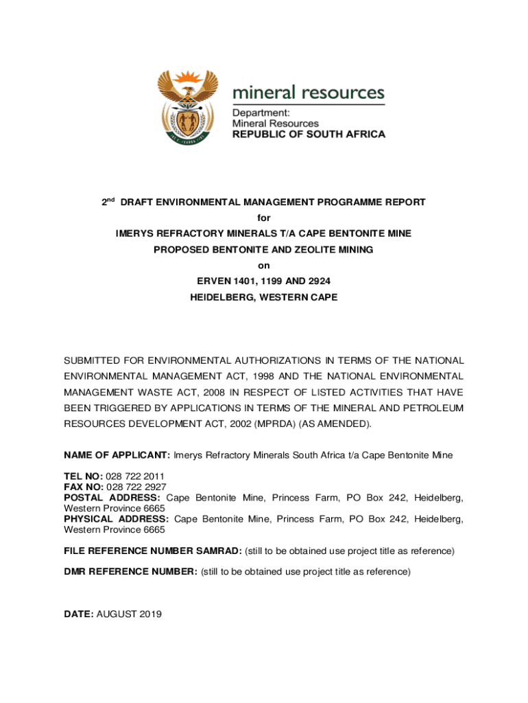 EMERY REFRACTORY MINERALS T/A CAPE BENTONITE MINE