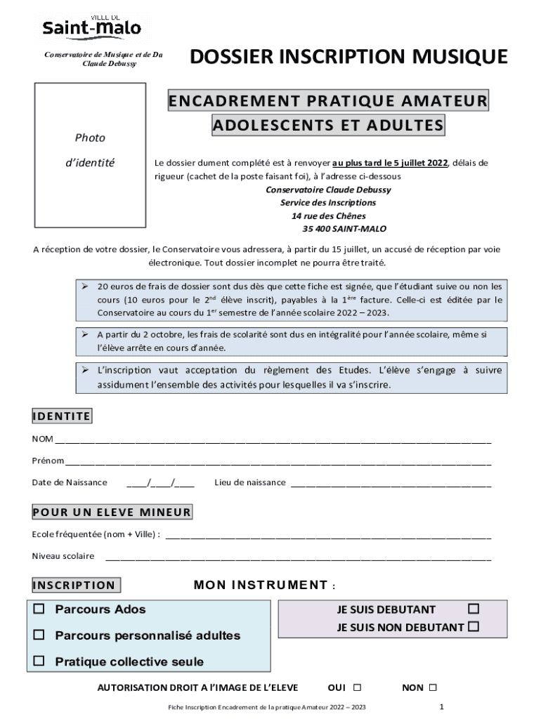 Lire attentivement les instructions pour chaque rubrique à compléter
