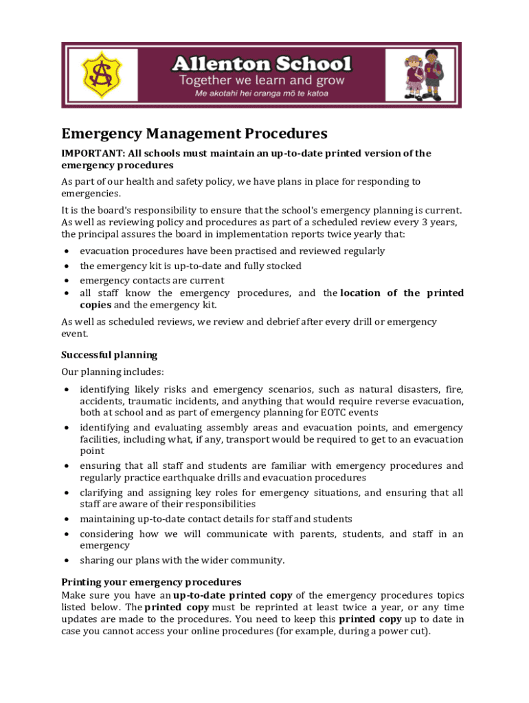 Get the free Emergency Management Procedures
