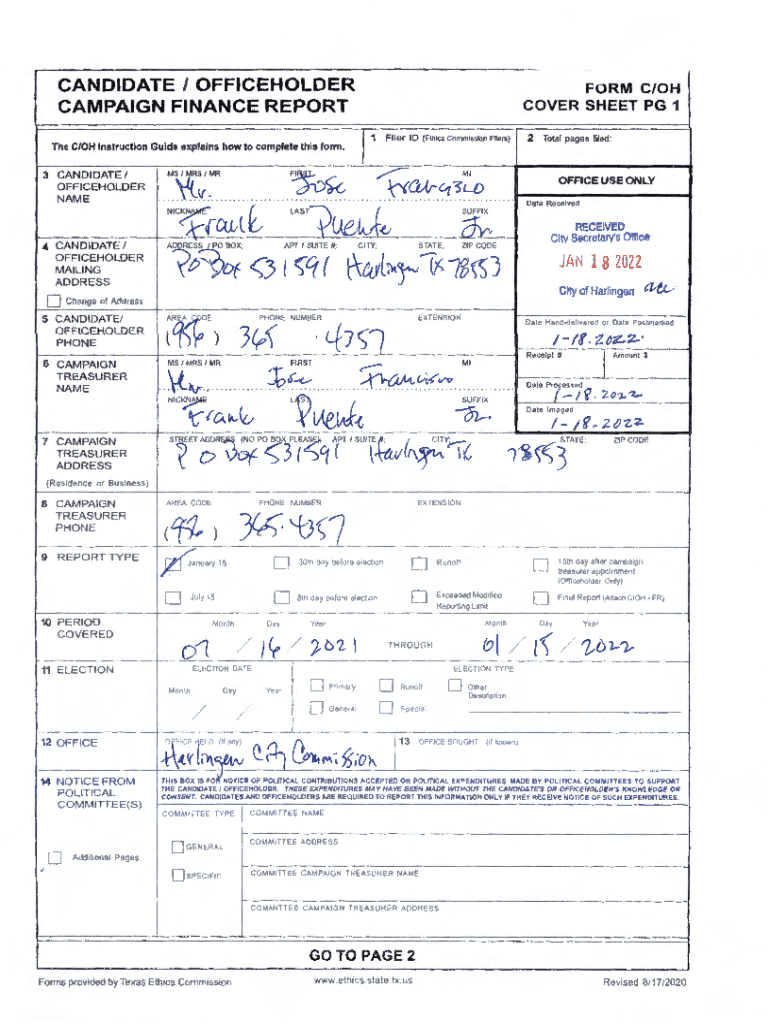 The specific financial information that must be reported on 1-r - harlingentxgov will be outlined by the local government in Harlingen, Texas.