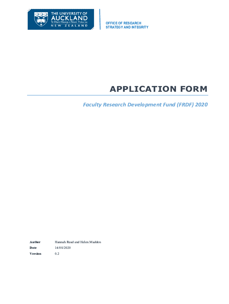 OFFICE OF RESEARCH STRATEGY AND INTEGRITYAPPLICATION FORM Faculty Research Development Fund (FDF) 2020AuthorHannah Read and Helen MaddenDate14/08/2020Version0.2Application FormFaculty Research Development