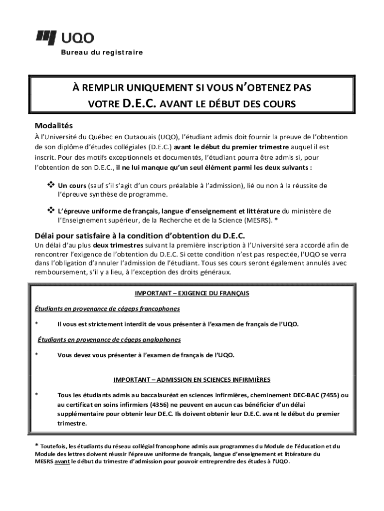 Obtenir le gratuit Bureau du registraireUQOUniversit du Qubec en ...