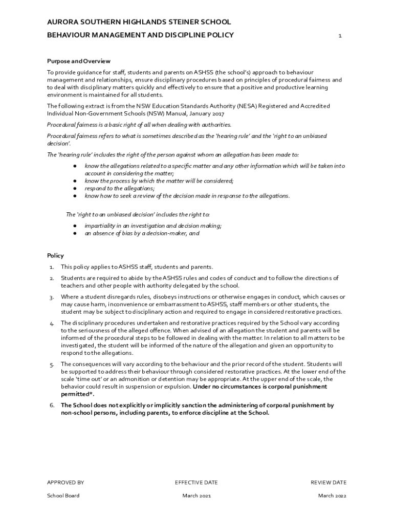 Get the free 4.3 Behaviour Management and Discipline Policy