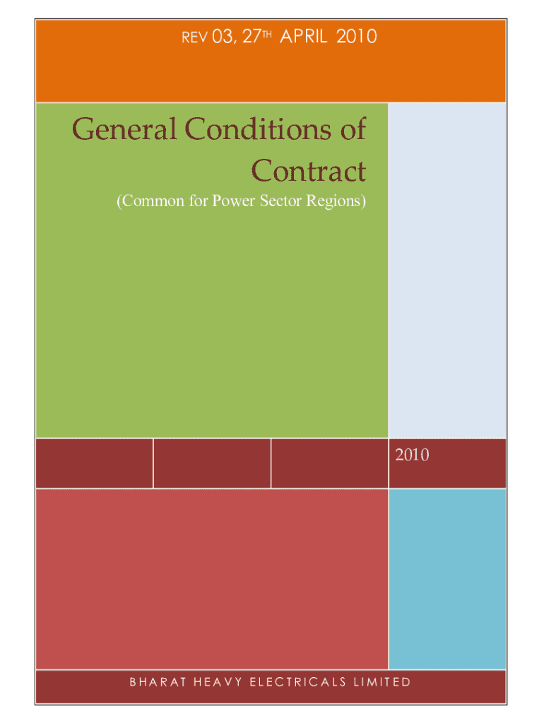 REV 03, 27THAPRIL 2010MarchMDRAFTGeneral Conditions of Contract (Common for Power Sector Regions)2010BHARAT HEAVY ELECTRICAL LIMITEDGeneral Conditions of Contract (Common for Power Sector Regions)27th