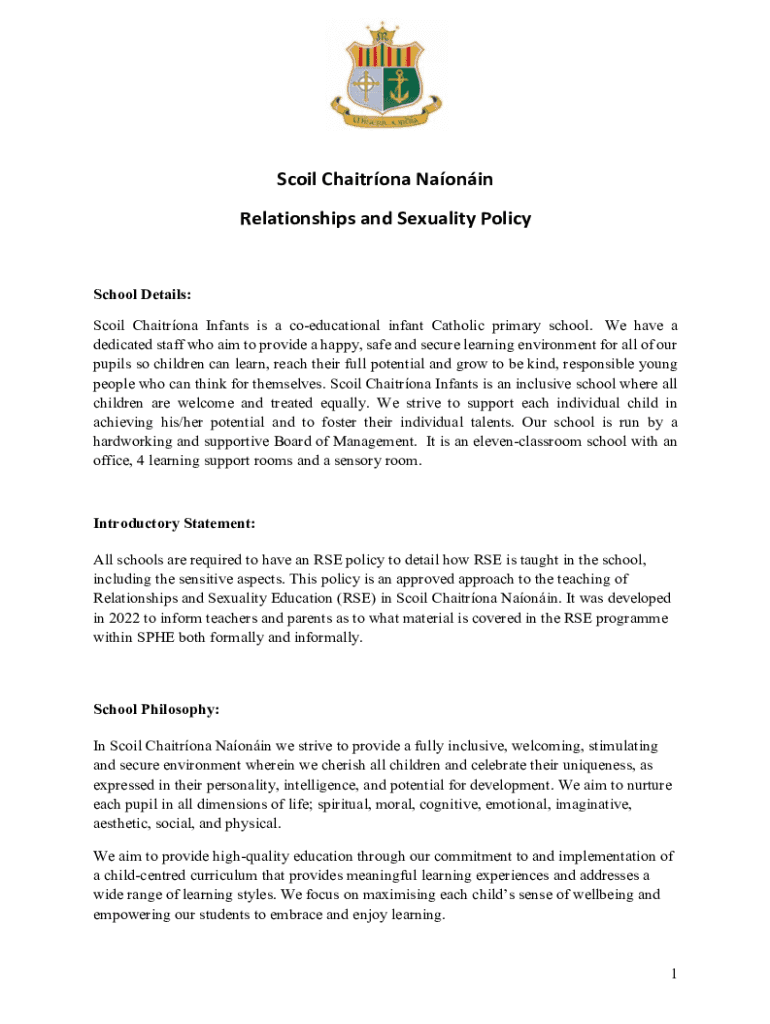 Get the free Admission Policy - Scoil Chaitrona Infants