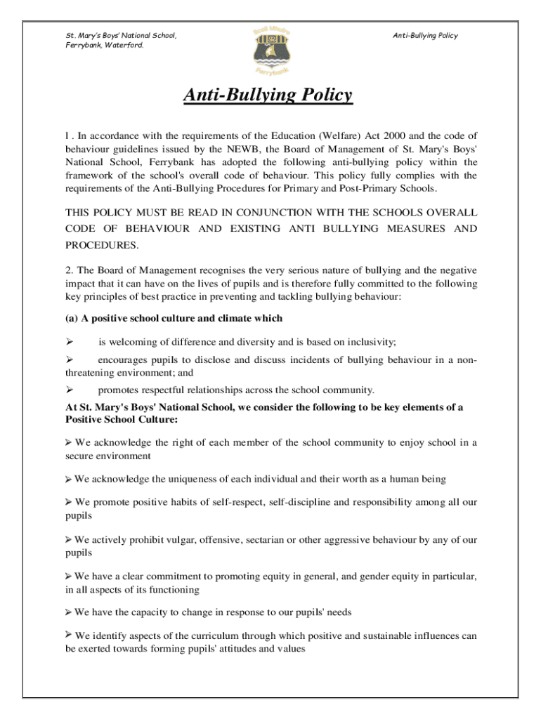 Get the free Anti-Bullying Policy - St Mary's Boys' National School