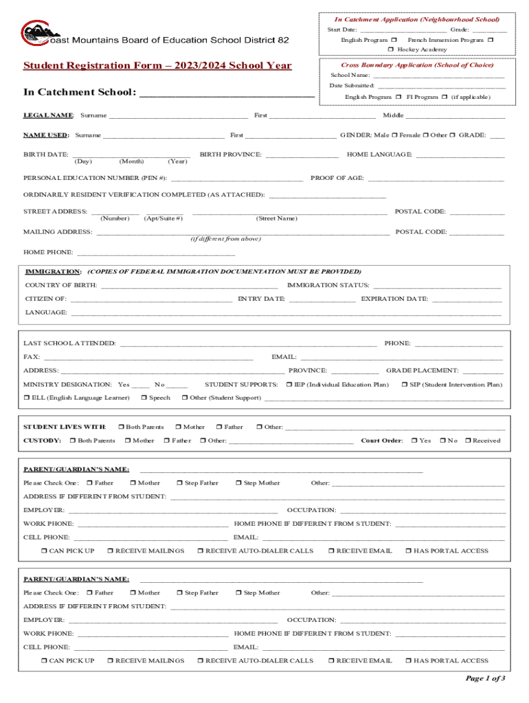 Get the free Student Registration Form 2023/2024 School Year