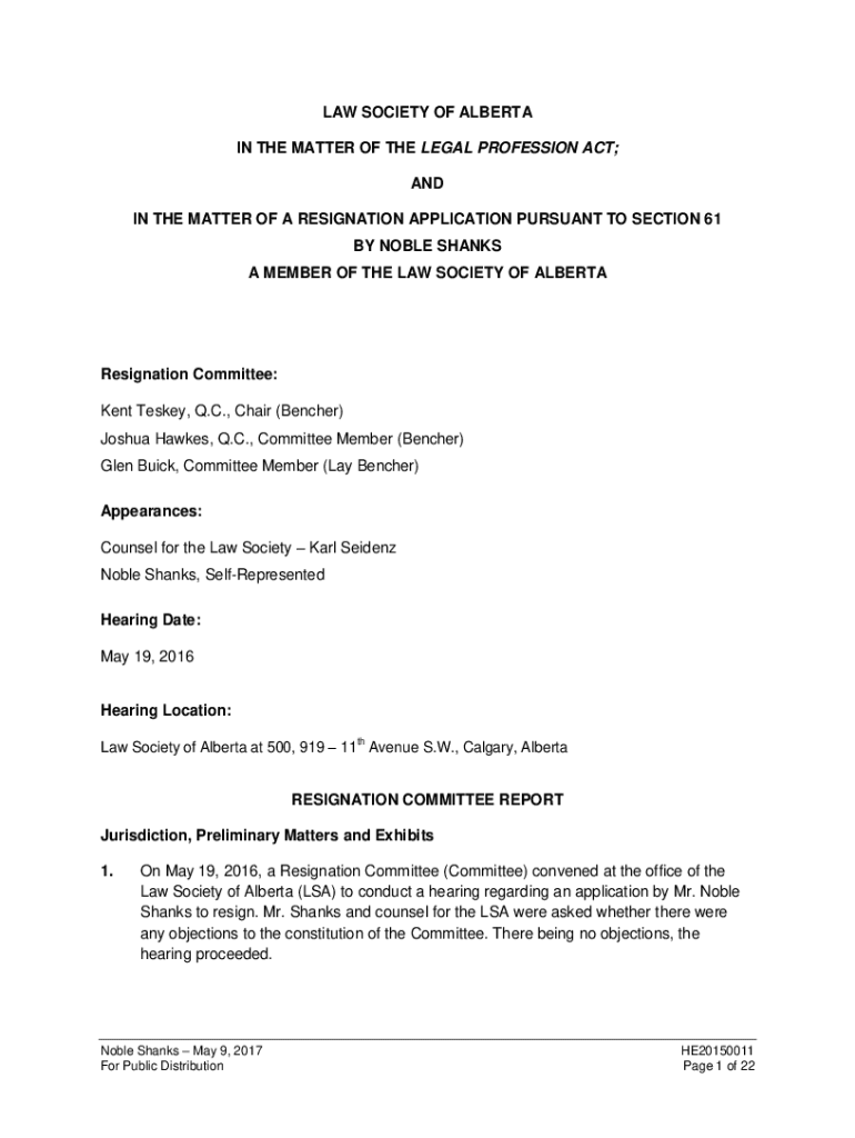 A MEMBER OF THE LAW SOCIETY OF ALBERTAResignation