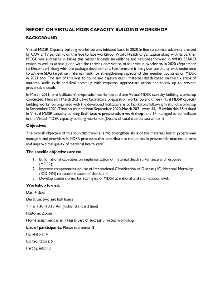 Get the free REPORT ON VIRTUAL MDSR CAPACITY BUILDING WORKSHOP