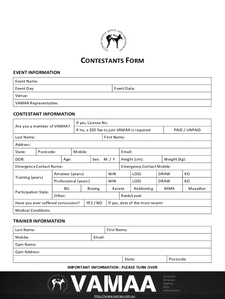 CONTESTANTS FORM