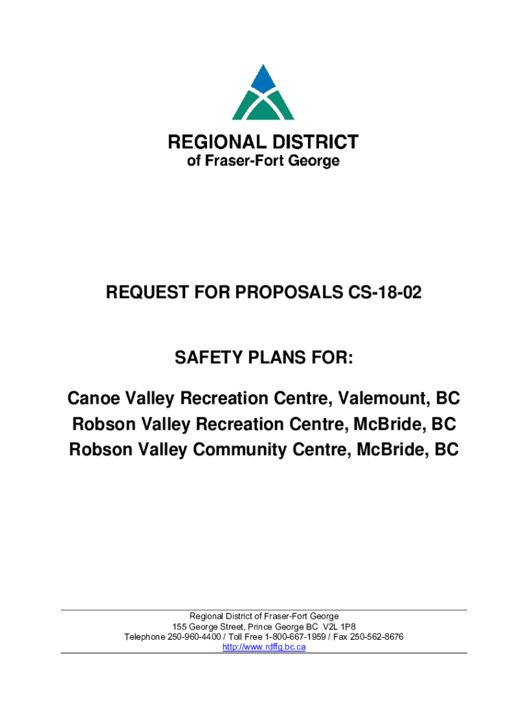 REQUEST FOR PROPOSALS CS1802SAFETY PLANS FOR: Canoe Valley Recreation Center, Vale mount, BC Robson Valley Recreation Center, McBride, BC Robson Valley Community Center, McBride, Regional District