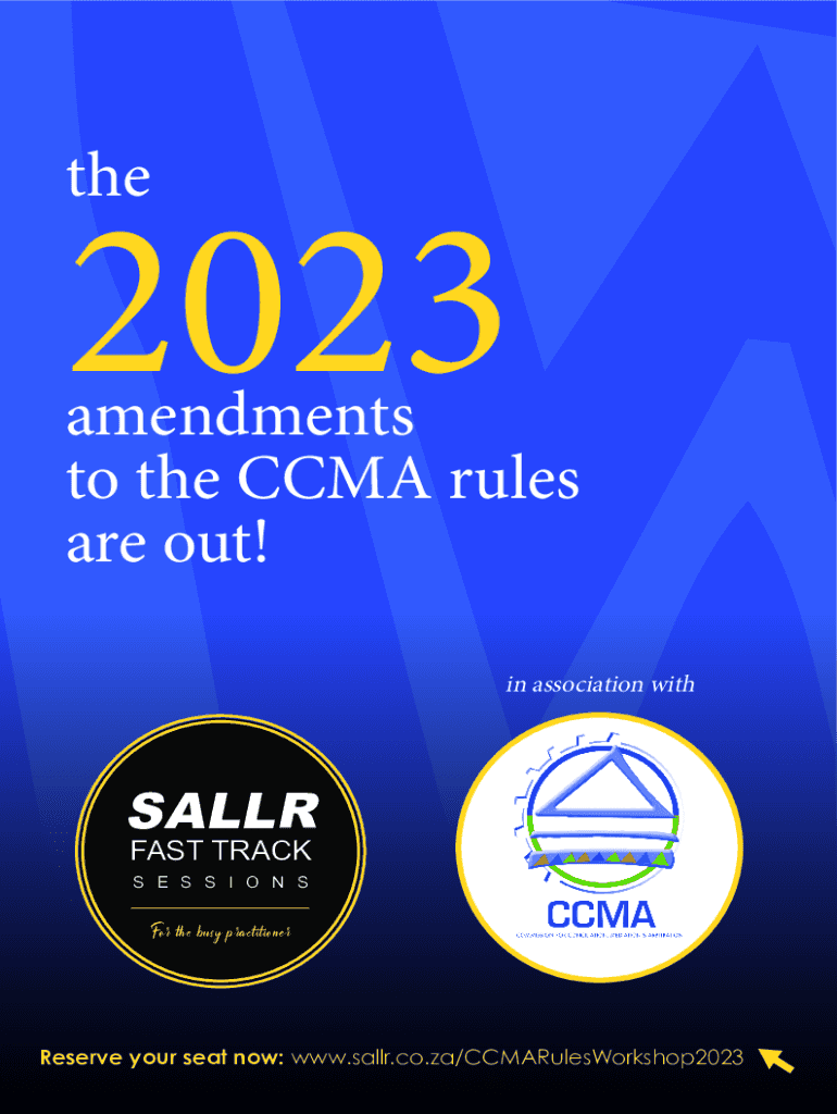 For the busy practitionerReserve your seat now: www.sallr.co.za/CCMARulesWorkshop2023SALLR