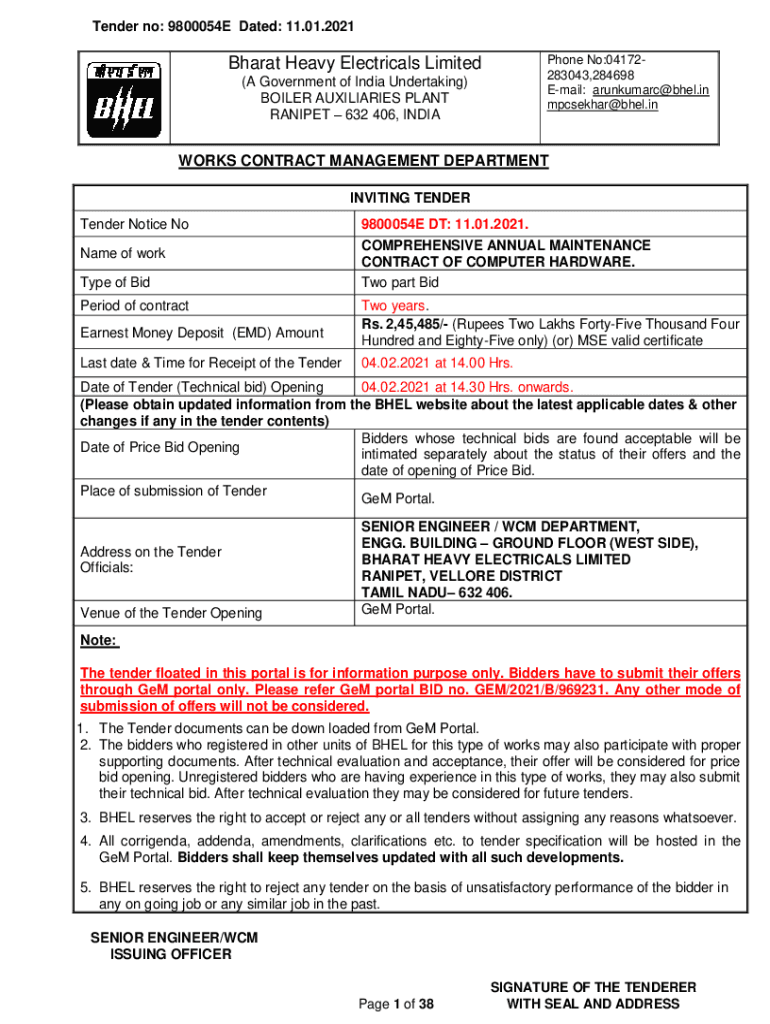mpcsekhar@bhel.inBharat Heavy Electrical Limited