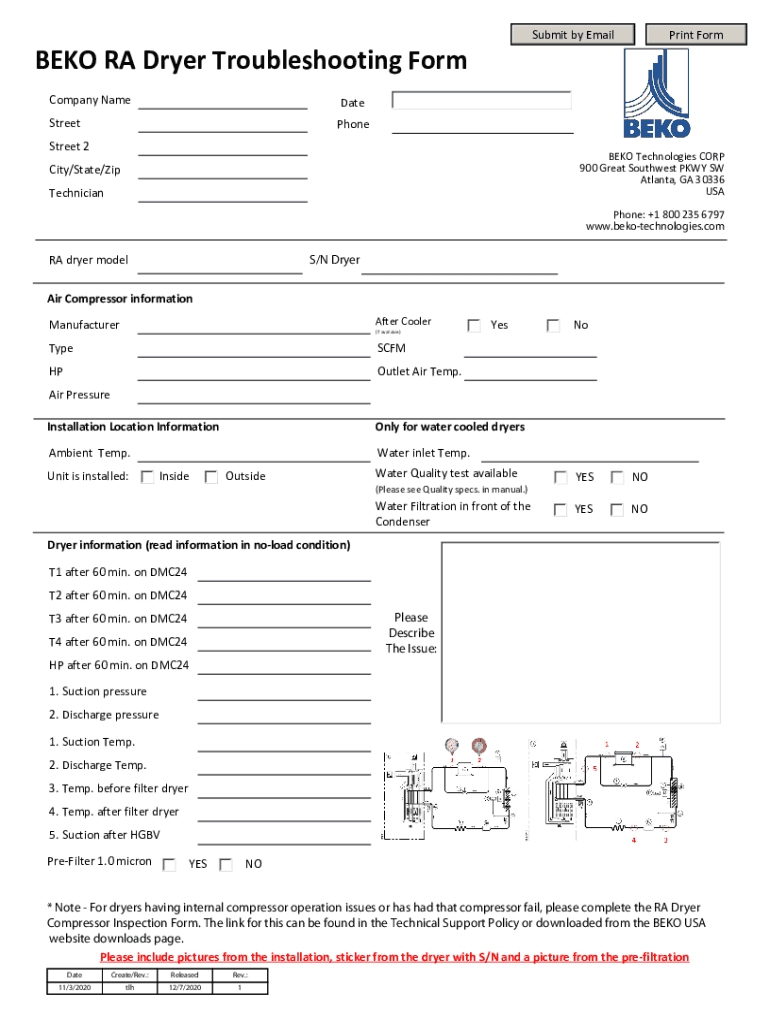 Information such as the nature of the issue, steps taken to troubleshoot, and any repairs or adjustments made must be reported on Beko ra dryer troubleshooting forms.
