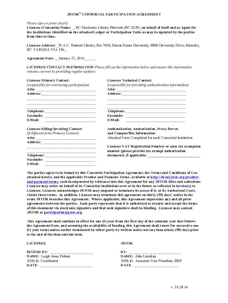Get the free British Columbia ELN Consortium Agreement20160127.docx