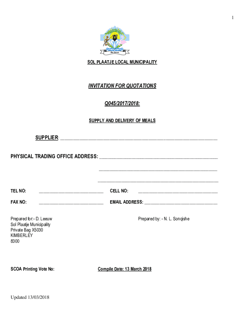 1SOL PLATE LOCAL MUNICIPALITYINVITATION FOR QUOTATIONS