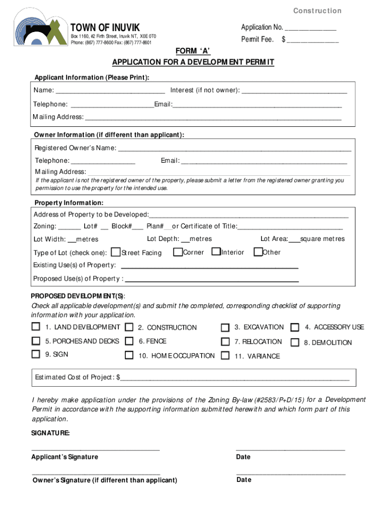 Phone: (867) 7778600 Fax: (867) 7778601Permit Fee.$ ___FORM A