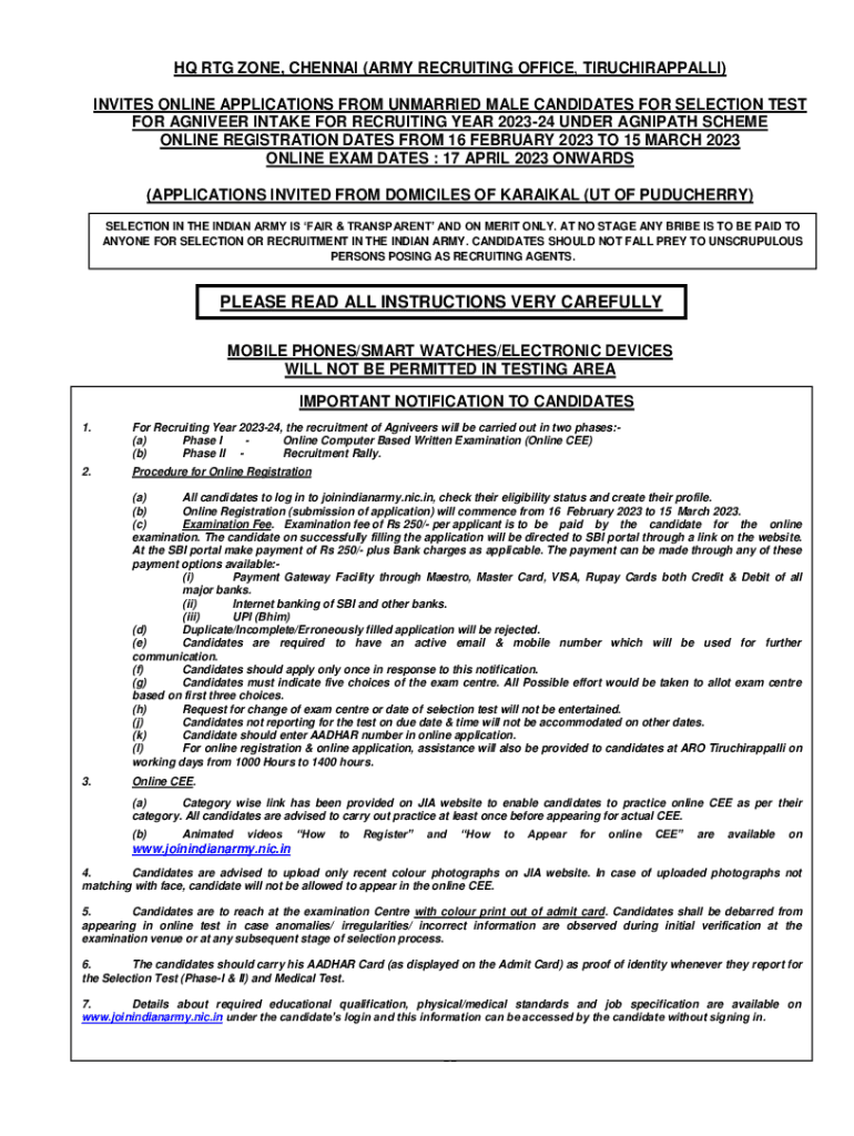 Get the free PLEASE READ ALL INSTRUCTIONS ... - Join Indian Army.