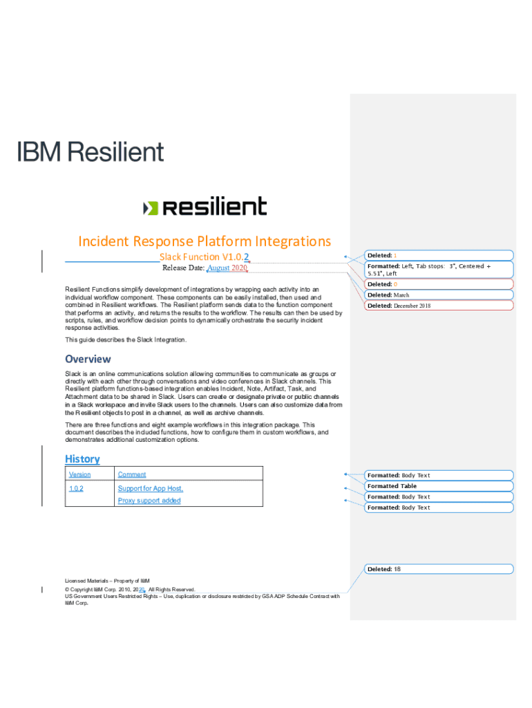 Incident Response Platform Integrations Slack Function V1.0.2 Release Date: August 2020Resilient Functions simplify development of integrations by wrapping each activity into an individual workflow