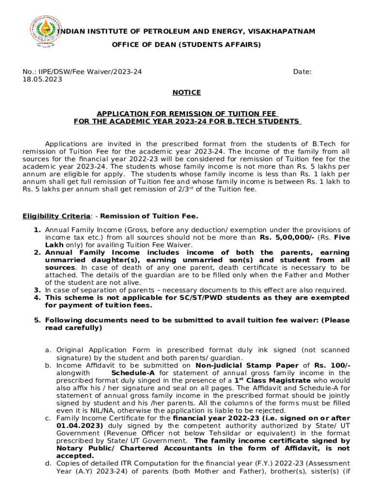 How to fill out BTech Fee-waiver Application for 2023-24 (Word Doc)