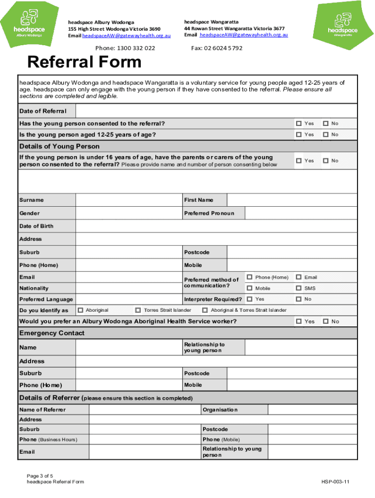 Fill out your headspace referral form hsp003011 online with pdfFiller!