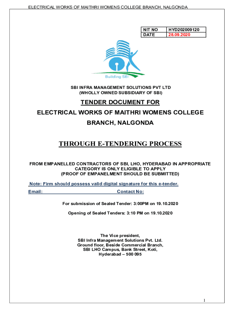 Get the free TENDER FOR ELECTRICAL WORKS MAITHRI WOMENS COLLEGE