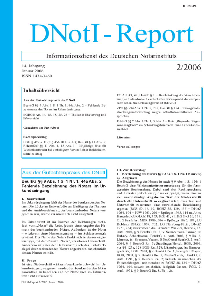 Informationsdienst DES Deutsche Notarinstituts2/200614. Charging