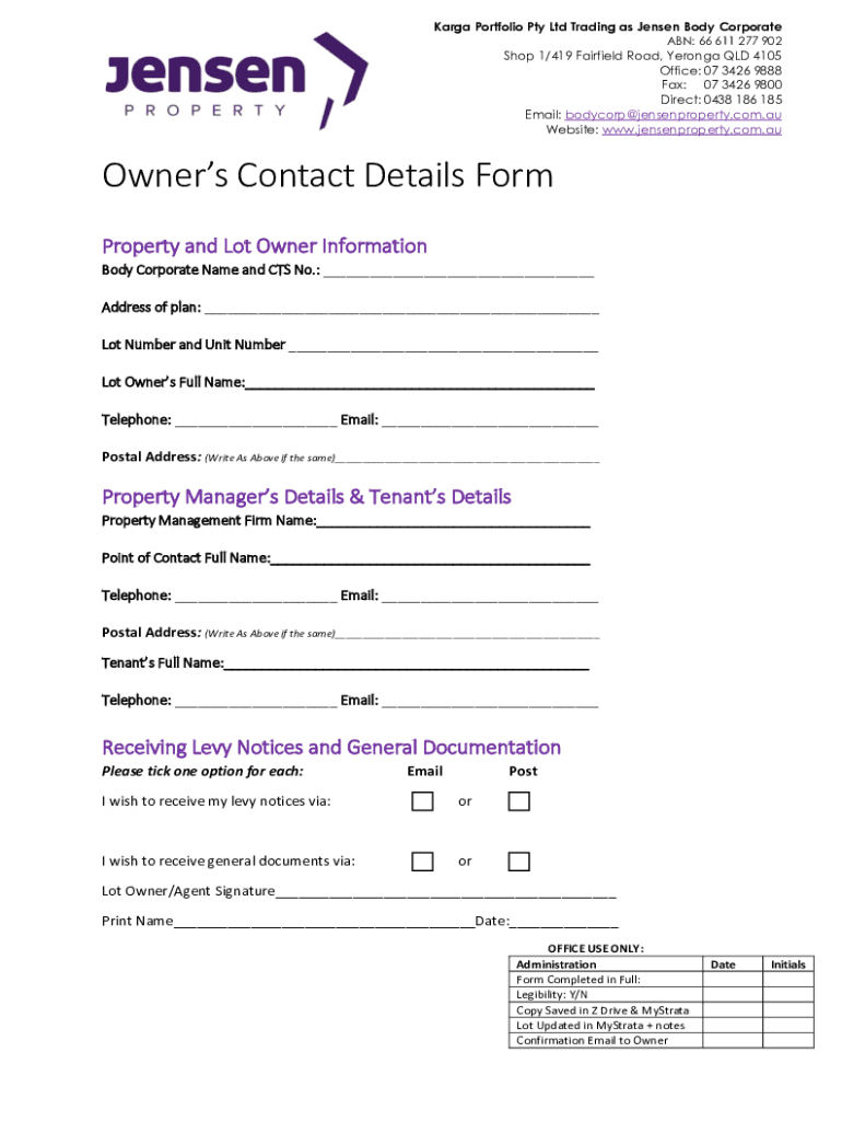 Owners Contact Details Formjensen is not the form you're looking for?Search for another form here.