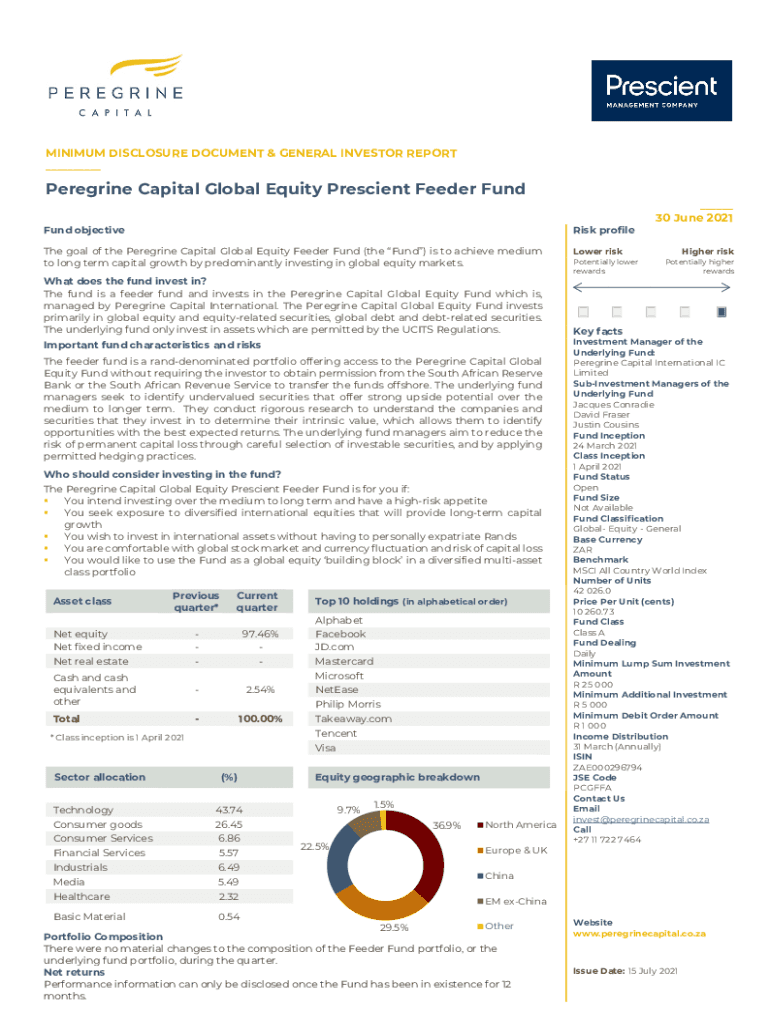 MINIMUM DISCLOSURE DOCUMENT & GENERAL INVESTOR REPORT ___Peregrine Capital Global Equity Prescient Feeder Fund___Fund objectives profile goal of the Peregrine Capital Global Equity Feeder Fund (the