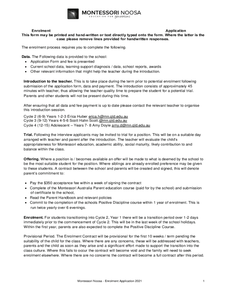 Enrolment Application This Form is not the form you're looking for?Search for another form here.