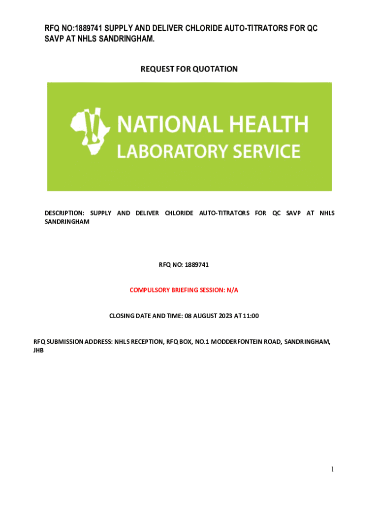 REQUEST FOR QUOTATIONDESCRIPTION: SUPPLY AND DELIVER CHLORIDE AUTOTITRATORS FOR QC SAVE AT NHS