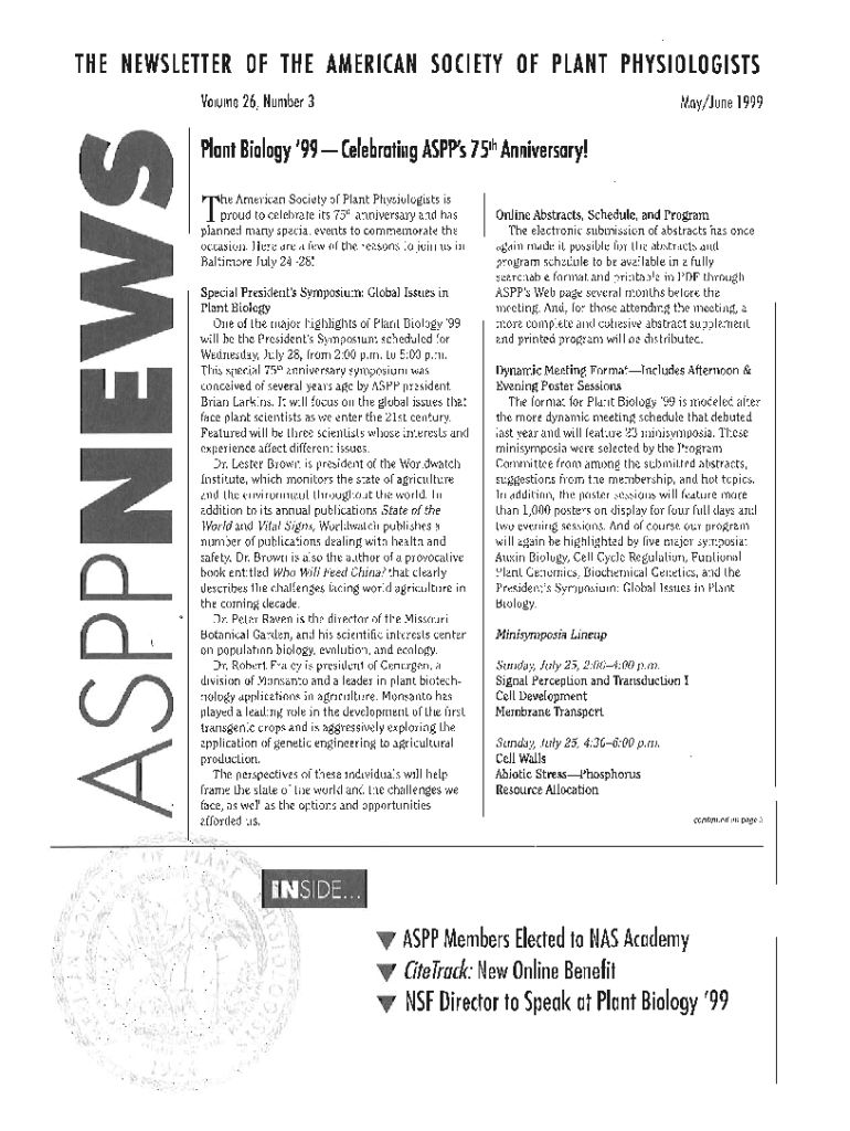 Get the free the newsletter of the american society of plant physiologists