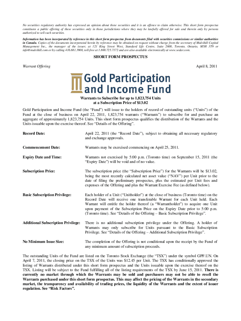 Get the free Preliminary Short Form Base Shelf Prospectus dated ...