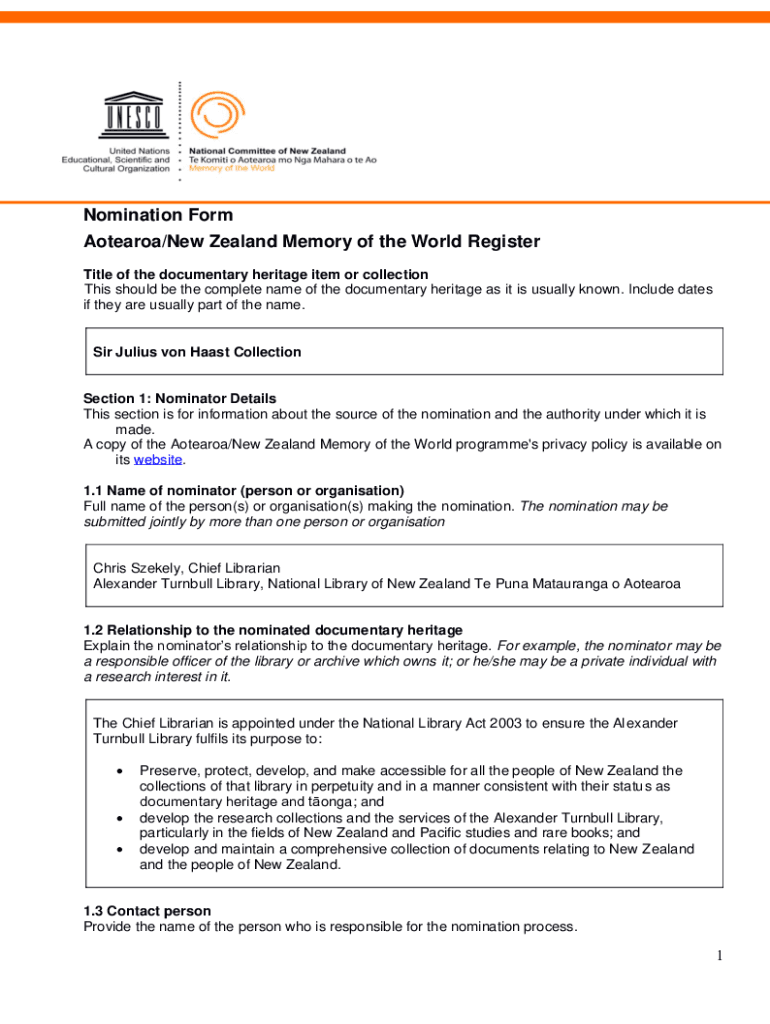 Get the free Nomination Form Aotearoa/New Zealand Memory of the World ...