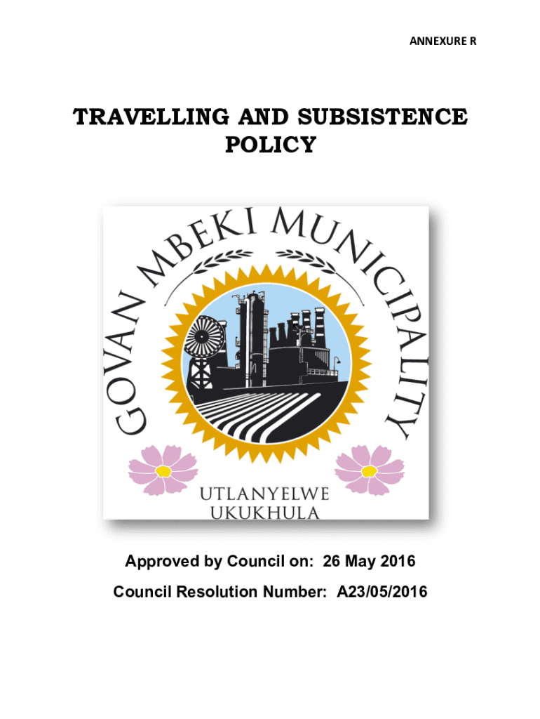 Get the free 4Annexure R - Travelling and Subsistence Policy.docx