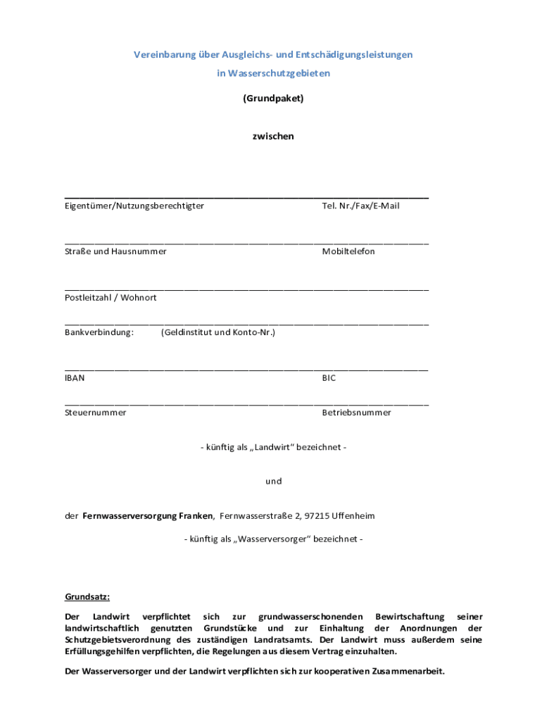 So füllen Sie und entschdigungsleistungen in wasserschutzgebieten aus