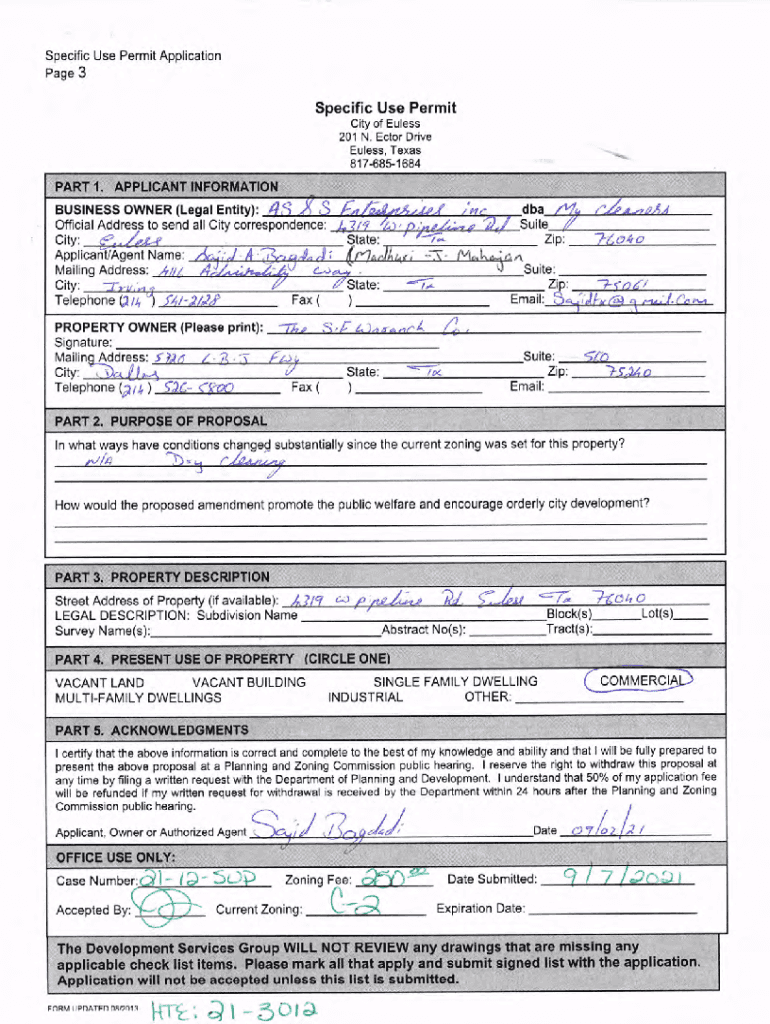 Specifics Permit Application Page 3