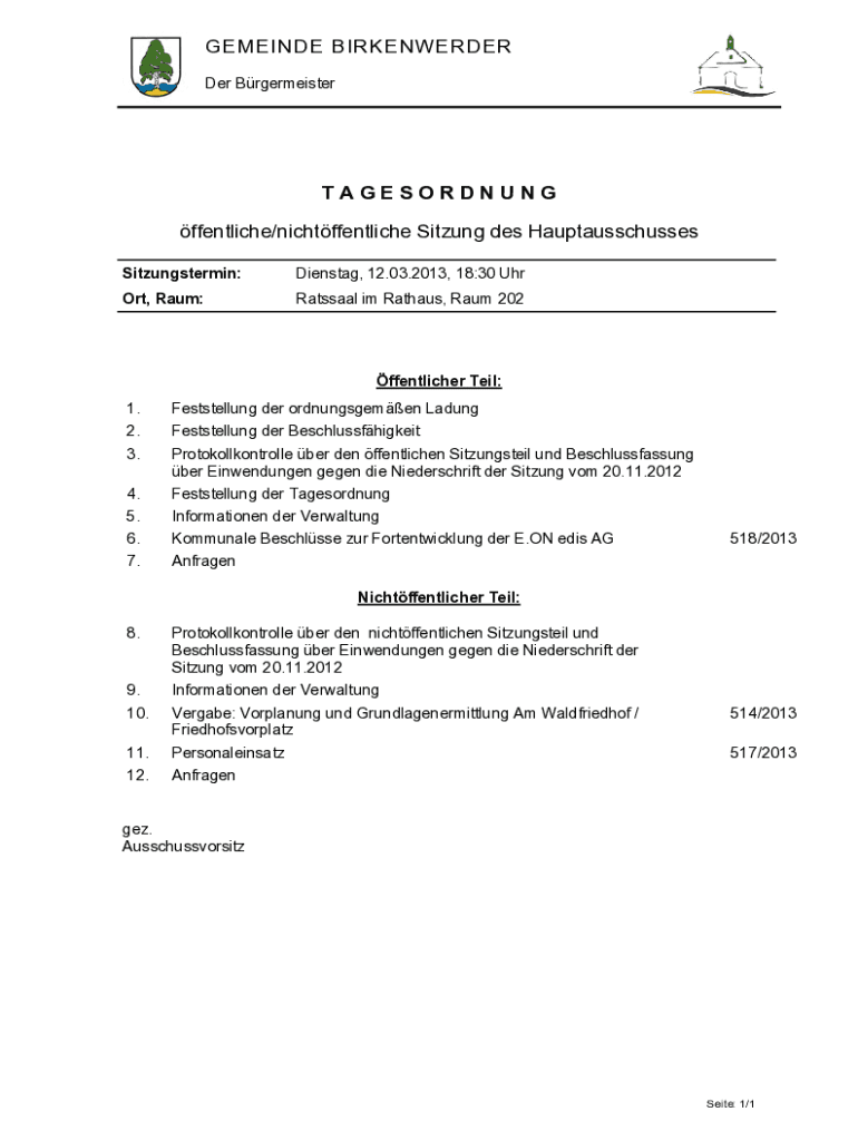 So füllen Sie tagesordnung ffentlichenichtffentliche sitzung des aus
