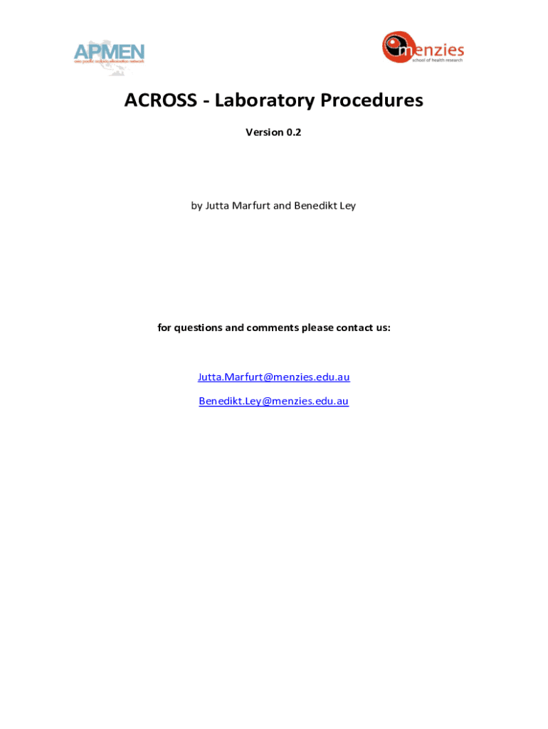ACROSS Laboratory Procedures Version 0.2by Junta Darfur and Benedict Labor questions and comments please contact us:Junta.Marfurt@menzies.edu.au Benedikt.Ley@menzies.edu.auContents SAMPLE PROCESSING