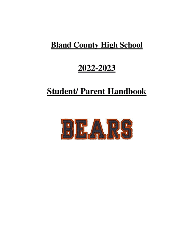 Bland County High School20222023 Student/ Parent HandbookTable of Contents Letter from the Principal................................ 3 General Information....4 Bland County Public Schools Mission