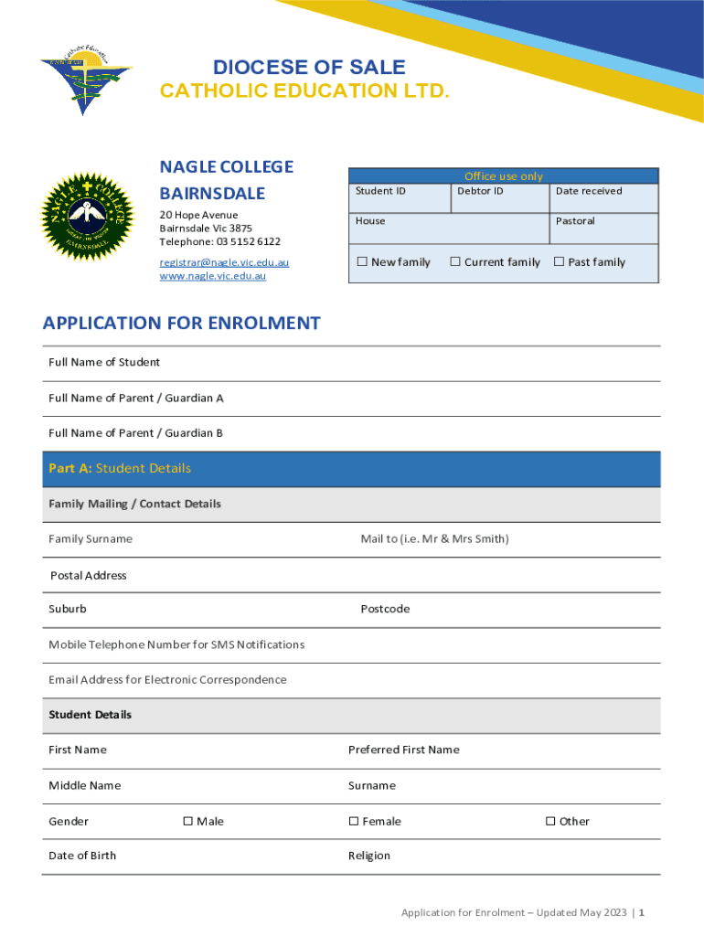 Get the free Nagle College - Directory of Catholic Education Victoria