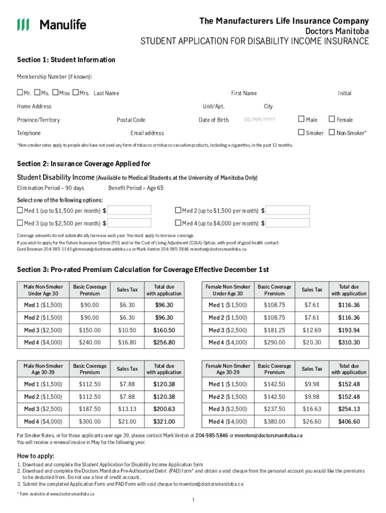 Doctors ManitobaSTUDENT APPLICATION FOR DISABILITY INCOME INSURANCE