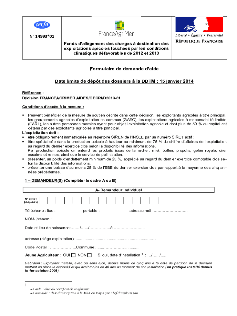 climates favorable DE 2012 et 2013Formulaire de demanded aide