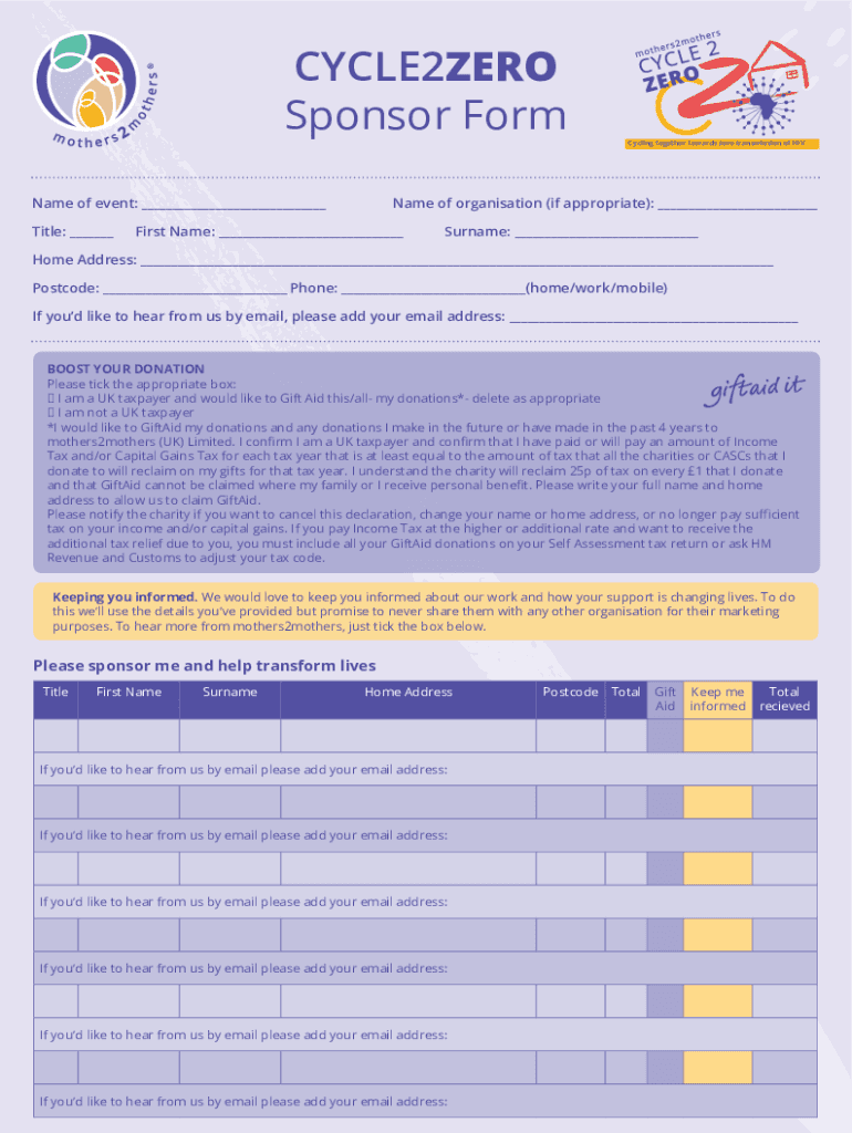Fill out your cycle2zero sponsor form online with pdfFiller!
