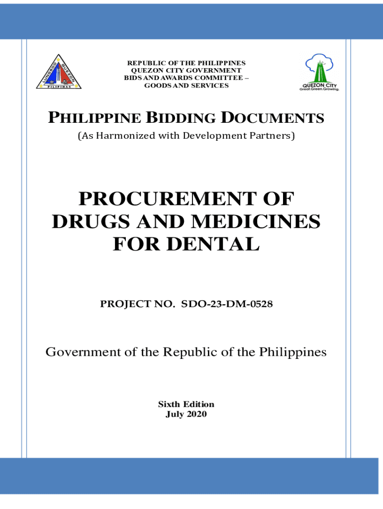 REPUBLIC OF THE PHILIPPINES QUEZON CITY GOVERNMENT BIDS AND AWARDS COMMITTEE GOODS AND SERVICESPHILIPPINE BIDDING DOCUMENTS (As Harmonized with Development Partners)PROCUREMENT OF DRUGS AND MEDICINES