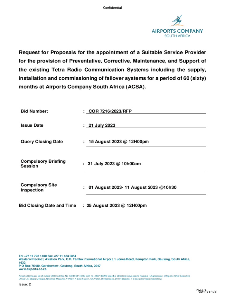 ConfidentialRequest for Proposals for the appointment of a Suitable Service Provider for the provision of Preventative, Corrective, Maintenance, and Support of the existing Tetra Radio Communication