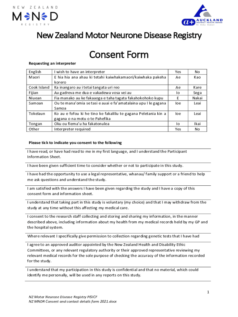 New Zealand Motor Neuron Disease RegistryConsent Form