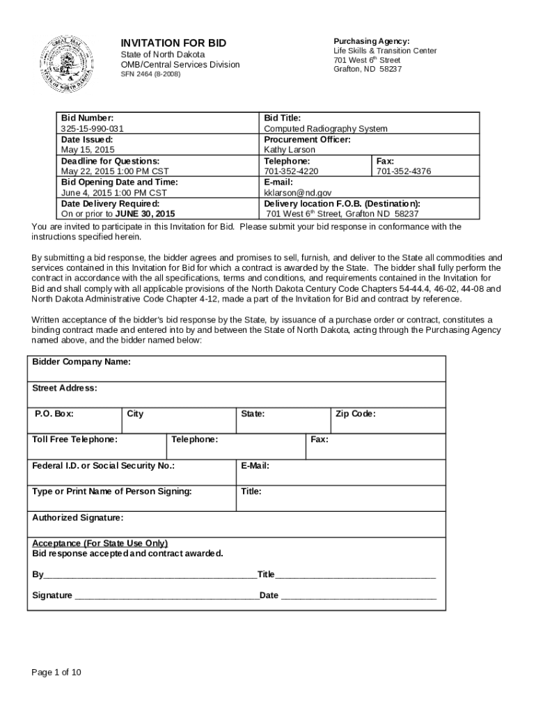 Instructions for the form No. RFP-23-0801 Security Guard Services