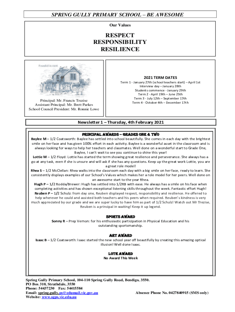 Email, fax, or share your spring gully primary school form via URL. You can also download, print, or export forms to your preferred cloud storage service.