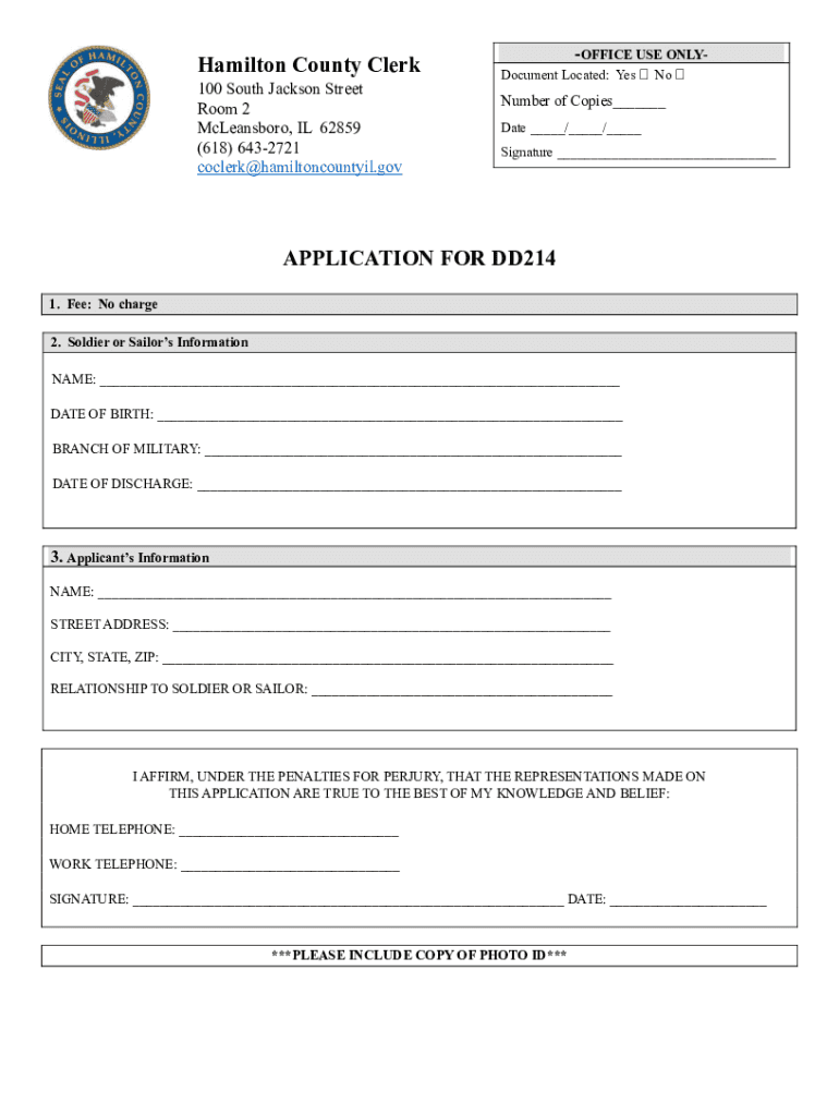 Get the free Hamilton County Clerk APPLICATION FOR DD214